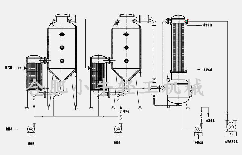 雙效外循環(huán)蒸發(fā)器(雙效濃縮器)是一種節(jié)能型自然循環(huán)受熱蒸發(fā)濃縮設(shè)備,可對多種液態(tài)物料在真空負(fù)壓狀態(tài)下,利用較低的溫度進(jìn)行快速蒸發(fā)濃縮,有效提高料液濃度。